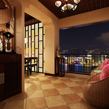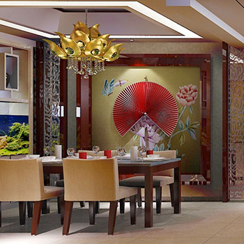 材料主要是藤條、竹子、石材、青銅和黃銅,深木色的家具,局部采用一些金色的壁紙、絲綢質(zhì)感的布料,燈光的變化體現(xiàn)了穩(wěn)重及豪華感。藤制的椅子在這里面算是最典型的元素了。藤制的一般都是浸過油或刷過木油的,怕火不怕水,在東南亞那樣的潮濕環(huán)境里面,藤制的家具是十分多的。原木質(zhì)的沙發(fā)加上白色布藝沙發(fā)墊,還有個性造型的茶幾和特殊紋理的電視背景墻,這都是十分有趣與少見的。既給人以新鮮感,又讓人眼睛一亮。餐廳內(nèi)多以家居配飾來填充整個空間,深顏色柜子和桌椅,裝飾性藝術品為空間添加些許靈動感,避免長時間給人帶來壓抑感。配合適當?shù)拿朗皆O計,更加顯得自由,穩(wěn)重。