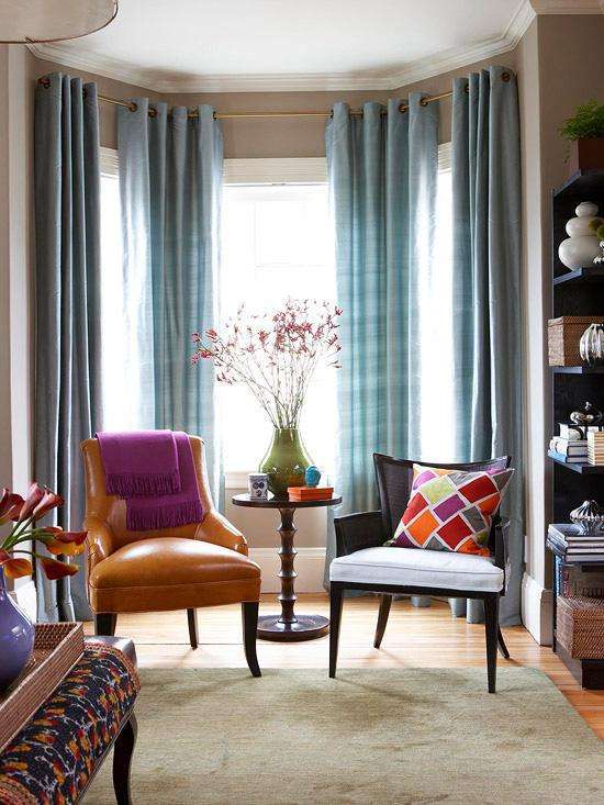 都知道現(xiàn)在窗簾都是兩層,紗簾和布簾,那么對(duì)于這種窗戶,除了按照以上多邊形窗戶和圓弧形窗戶的幾種方法,還有一種就是沿著飄窗做紗簾,而將布簾放在飄窗里部,這樣會(huì)很方便,采光也會(huì)比較好▼