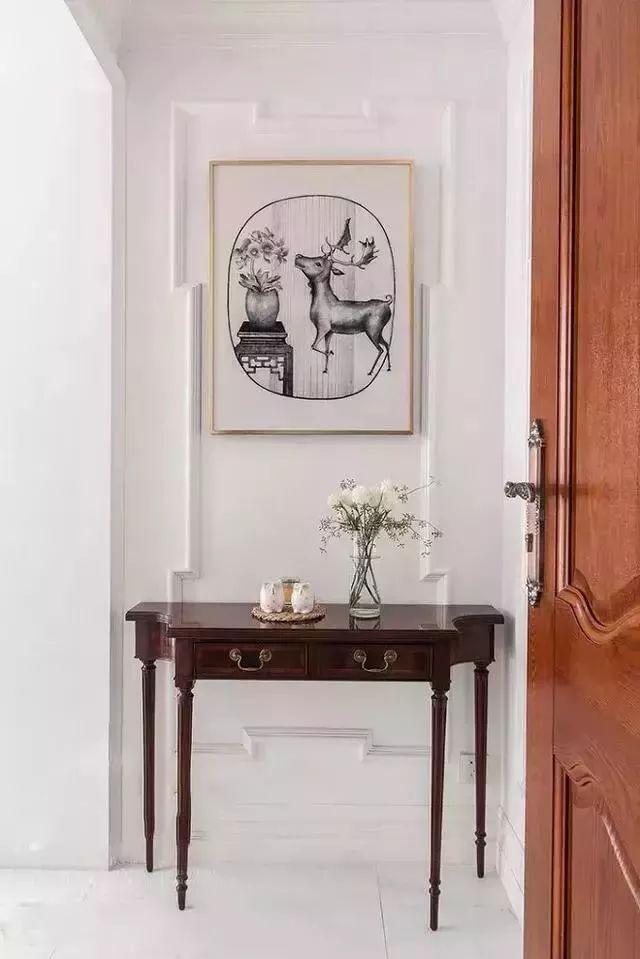 這樣中間和柜底懸空的設(shè)計,中間放綠植、相框、鑰匙、零錢的,底部放常穿的鞋子,其他封閉起來的柜子都可以當(dāng)做收納柜。