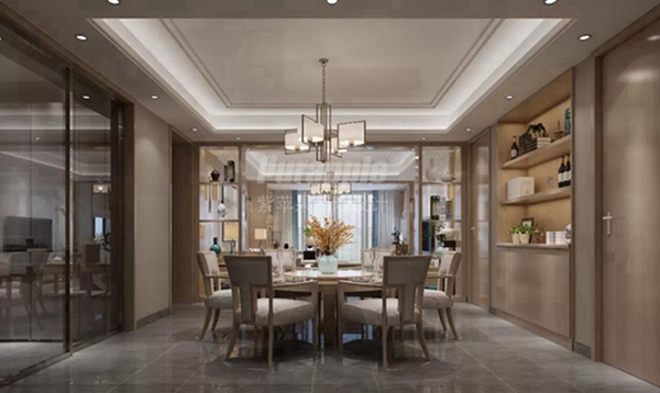 整個(gè)客餐廳空間布局中正、大氣、素中有絢。廚房使用自由開關(guān)的推拉玻璃門,最大化的擴(kuò)容空間,與餐廳空間相呼應(yīng),空間不僅有互動(dòng)感還不失愜意的恬靜。