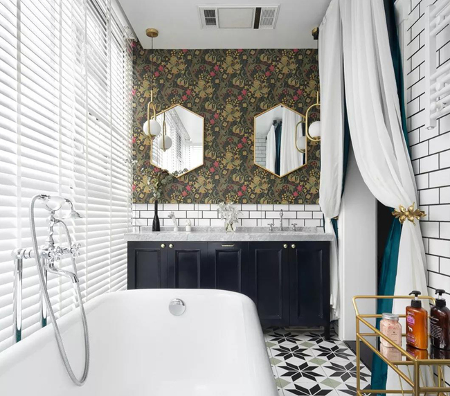 中古的燈具,復(fù)古的浴缸,還有陽光穿過百葉窗留在泡泡上的斑駁身影;來自雨林的的壁紙,生機勃勃,一種是來自對生活的熱情,一種是對美的篤定。