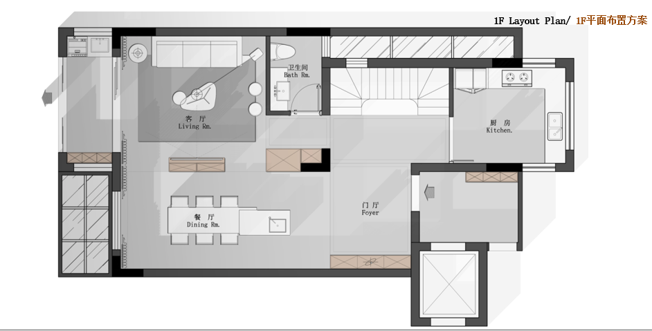1F:客廳,餐廳,門廳,廚房,衛(wèi)生間【97㎡】
