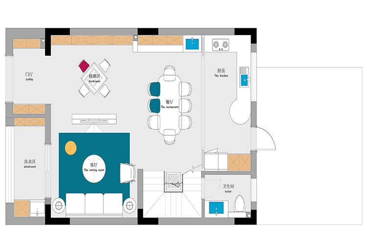 熙華府負(fù)一層除去非承重墻,把整個(gè)地下室變成一個(gè)超大整體空間。南邊做了一個(gè)會(huì)客區(qū)域,采光井處連通會(huì)客區(qū)后方做了一個(gè)健身區(qū)域,沙發(fā)后方設(shè)置水吧臺(tái),滿足會(huì)客和健身的飲水需求。北面設(shè)計(jì)了品茶區(qū),沿墻設(shè)置收納柜。北面采光井設(shè)計(jì)了景觀和休閑椅,可以閱讀、飲茶。