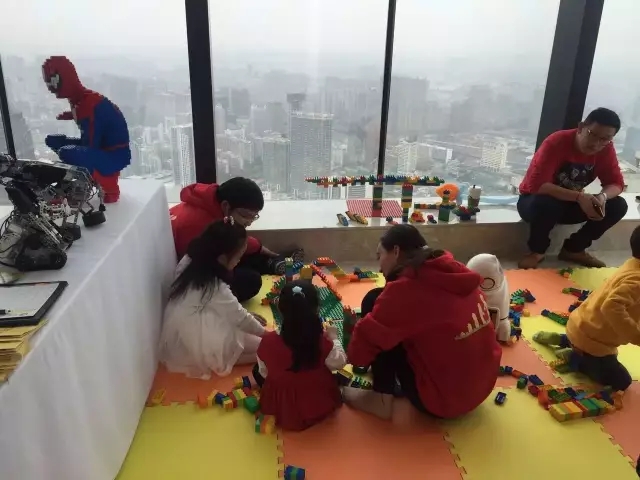 兒童娛樂(lè)區(qū),小業(yè)主們聚在一起跟小機(jī)器人還有樂(lè)高玩具玩。瞧!他們與工作人員一起玩的多開(kāi)心~