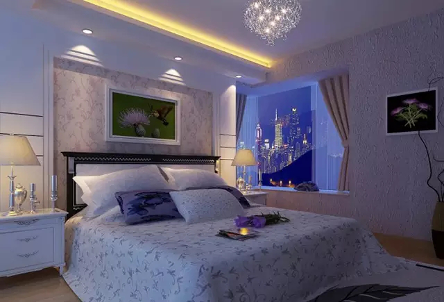 盡量不要使用裝飾性太強(qiáng)的懸頂式吊燈,它不但會使你的房間產(chǎn)生許多陰暗的角落,也會在頭頂形成太多的光線,躺在床上向上看時燈光還會刺眼。最好采用向上打光的燈,既可以是房頂顯得高遠(yuǎn),又可以使光線柔和,不直射眼睛。除主要燈源外,還應(yīng)設(shè)臺燈或壁燈,以備起夜或睡前看書用。另外,角落里設(shè)計幾盞射燈,以便用不同顏色的燈炮來調(diào)節(jié)房間的色調(diào),如黃色的燈光就會給臥室增添不少浪漫的情調(diào)。