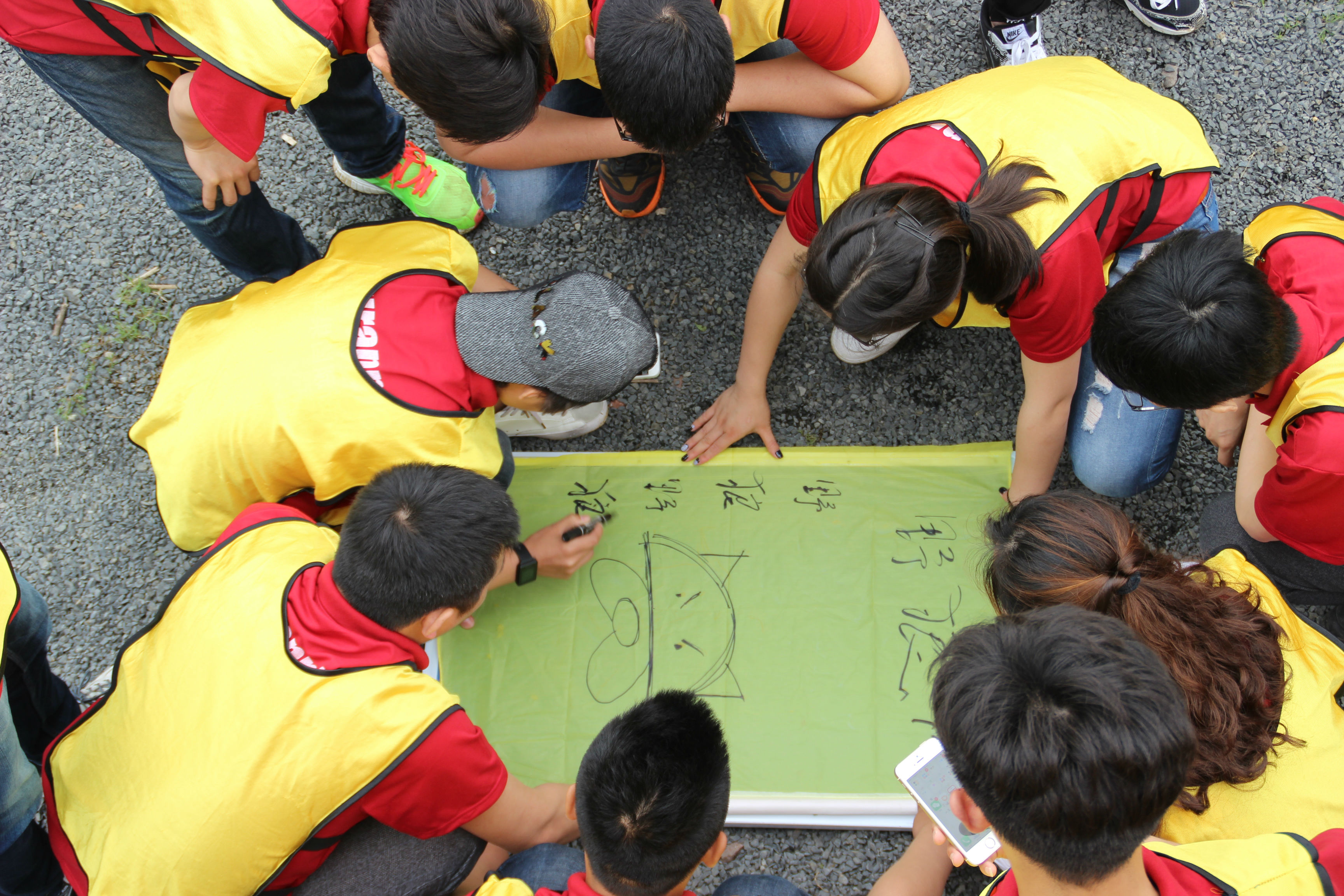 所有小伙伴們分成六隊(duì),分別給各自的隊(duì)伍取了隊(duì)名、隊(duì)歌以及口號。從中迅速讓我們知道了團(tuán)隊(duì)怎么快速溝通以及重新調(diào)整計(jì)劃。