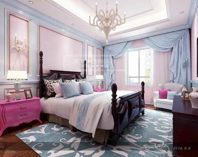 漫步到主臥的瞬間,濃濃的少女粉迎面而來,初戀般的感覺涌上心頭,看那粉色和藍(lán)色的對比色不失穩(wěn)重,更凸顯了高貴。也更是體現(xiàn)了男主和女主人之間的甜蜜愛情,天長地久。