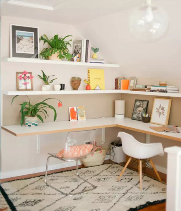 建造這樣的工作區(qū)會需要大一點的空間,但對比起專門的書房來說,整個成本真的會低很多,而且整齊利落,即是靈感當(dāng)中提到的置物展示空間,又可以玩電腦、做功課和工作,掛墻式的桌面和擱板置物架簡潔而且價格親民,再配張地毯,整個位置立刻就亮眼了起來。