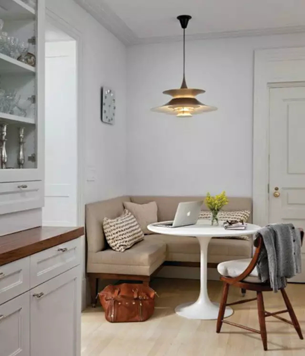 不大的轉(zhuǎn)角位置,尤其是餐桌靠墻的小角落,有時連放個落地?zé)舳紩@得擁擠。想要讓這個小小的空間生動起來?