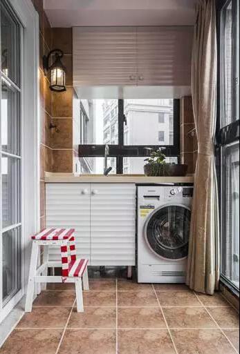 這個陽臺擔(dān)負(fù)起了洗衣間的功能,同時也具有盆栽美化的功能。