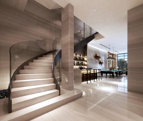 2、別墅樓梯的高度:別墅樓梯最高一級踏步到天花板的高度,需求有兩米以上的凈空,最低不低于1.8米。否則會發(fā)生壓迫感。