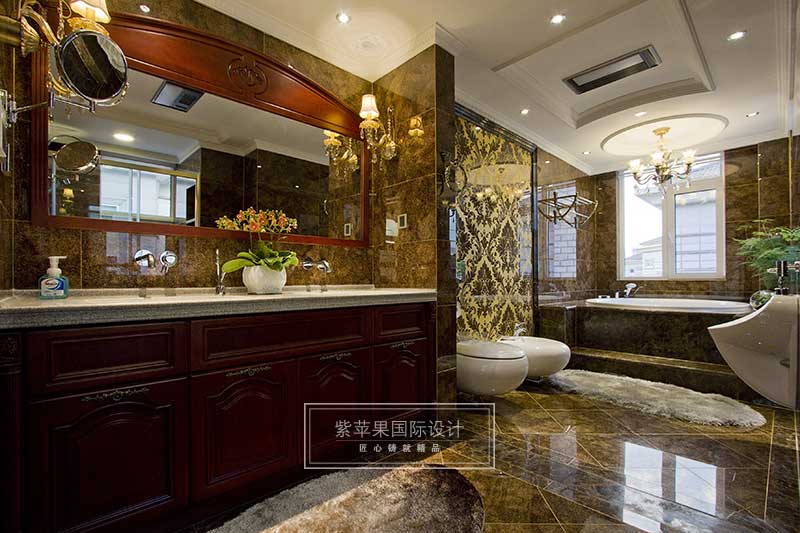 空間框架繼承了實(shí)木材料的古典美,玻璃,石材等大面積的運(yùn)用,塑造了經(jīng)典西式設(shè)計(jì)。