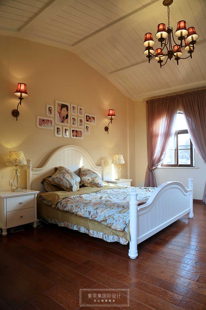 弧形的屋頂讓空間的視線得以延伸,花紋床品為空間注入一股清新的春意與田野的味道,當(dāng)紗質(zhì)的窗簾隨風(fēng)起舞,使得陽光從縫隙中偷偷進(jìn)入,傾瀉至床上,撒上一片芬芳,每個(gè)清晨,讓溫暖、自然的陽光叫醒自己,何嘗不是業(yè)主要的幸福生活。