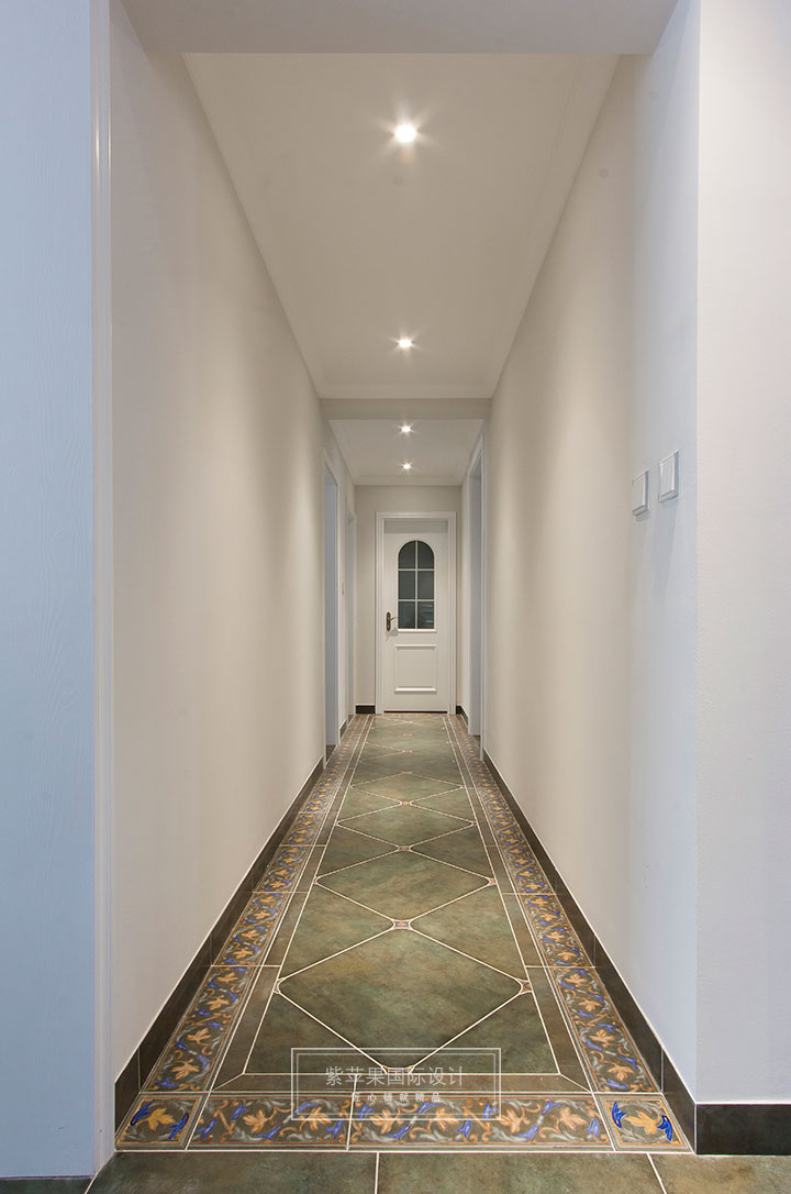 筆直的過道空間里,墨綠色的復古磚在白色墻壁的映襯下,更顯品質(zhì)和美觀。