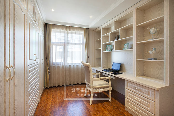 書房采用實木地板,走進書房,就能感受到高貴的深色調(diào)與厚重的格調(diào)。