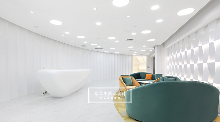 談及上海仁登醫(yī)療門診部的室內及軟裝設計靈感,設計師表示:“美容院使用者大多為女性,而女人生來多感性,為感官性動物,整體設計則主要強調女性的柔美、圓潤、包容,裝飾多以曲線為主?!崩矛F(xiàn)代極簡風格中圓滑的曲線、溫柔的色彩與質感,搭配簡約風的沙發(fā)、燈具、掛畫及大部分留白的墻面與空間,讓女性從中感受到和諧的平衡感。同時,從藝術性、人性化角度減少鏡面物品的出現(xiàn),增添暖光燈帶的隱藏運用,營造一種簡單干凈、純粹自然又不失格調品味的空間體驗。