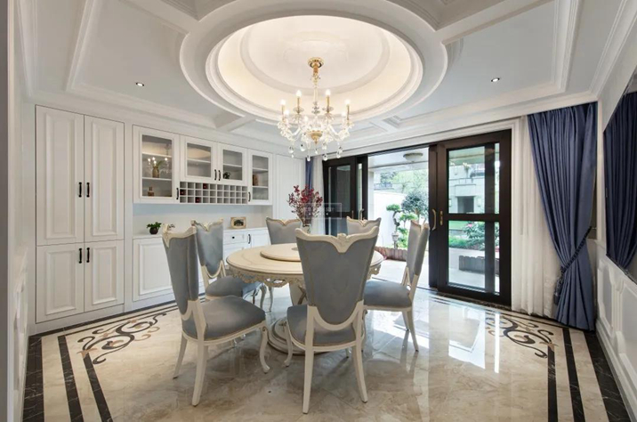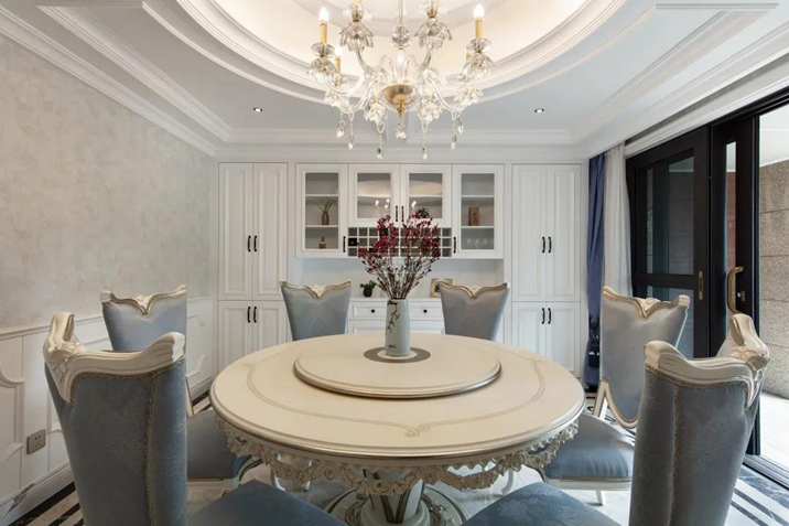 燭臺(tái)樣式的吊燈,對(duì)稱(chēng)的象牙白餐邊柜仿佛耳邊響起的是小提琴的優(yōu)雅獨(dú)奏。