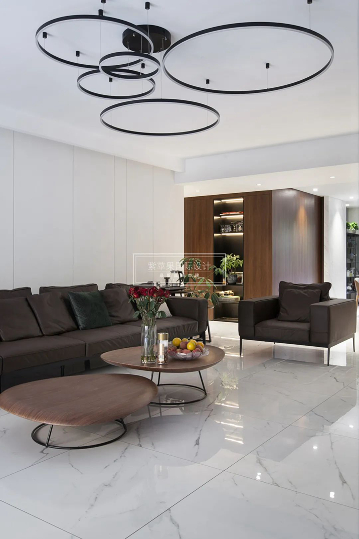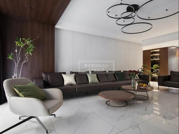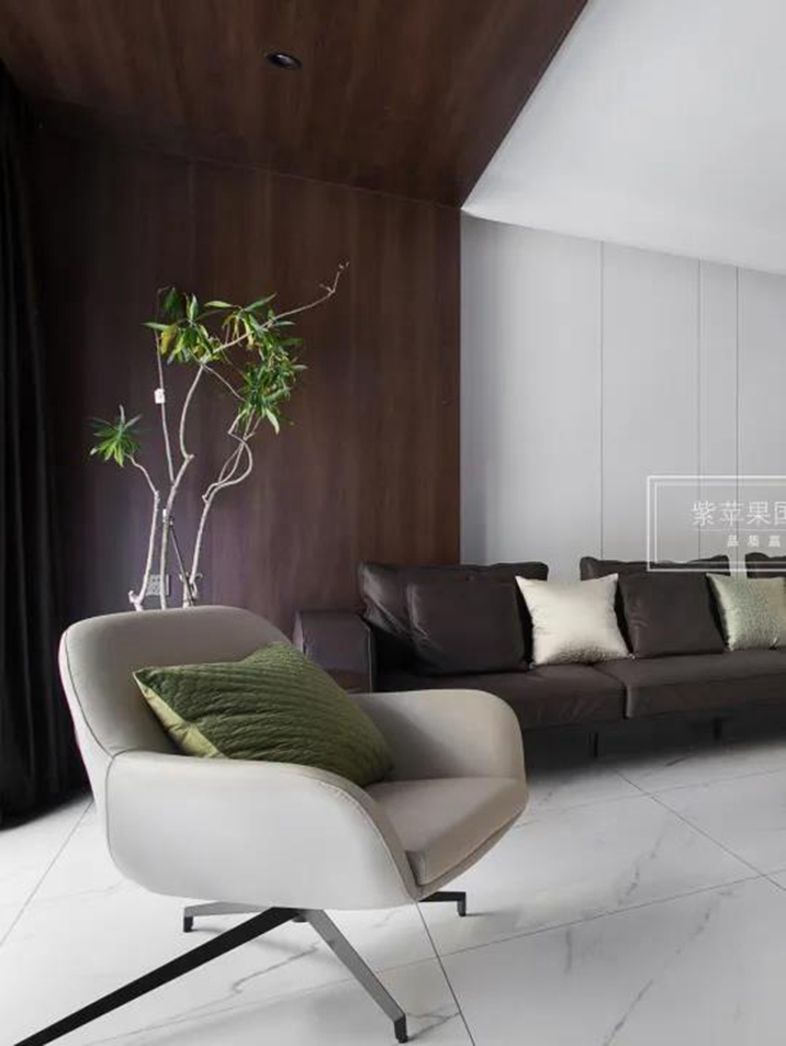 “留白”也是一種元素,恰當?shù)牧舭讜o極簡風格空間帶來高級質(zhì)感,所謂“簡到極致為大雅”。當然留白不一定是白色,也可以是其他的顏色,還可以搭配各種不一樣的配色方案和組合,比如白色+胡桃木。兩者的結(jié)合更好地賦予客廳空間以更強的情緒和個性化的視覺,制造整體氛圍。